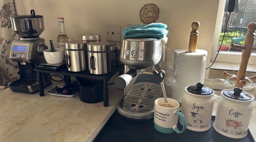 Almost exactly 3 years ago, fed up of price increases and shrinkflation, I decided I’d try making my own espresso at home. I invested in the best-rated budget setup I could afford – a Sage Bambino and matching Smart Grinder Pro – and excitedly purchased my first bag of beans. Here’s my original setup: